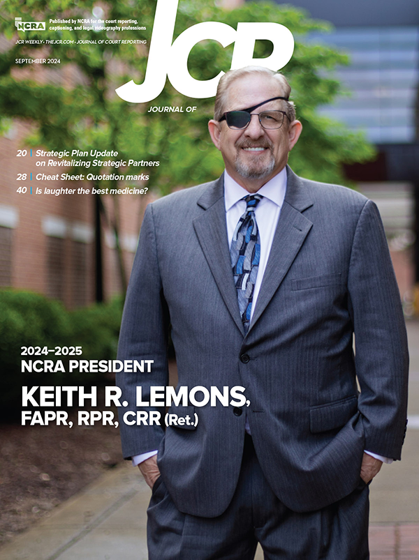 JCR – Journal of Court Reporting is a fully searchable, online presentation of the print edition that members receive 10 times a year in the mail. The digital presentation also presents an